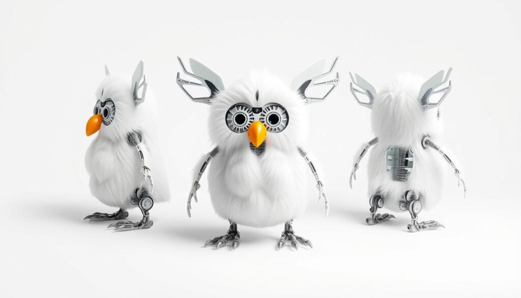 • Furbies without fur offer a unique visual experience, showcasing the mechanical components that are normally hidden.